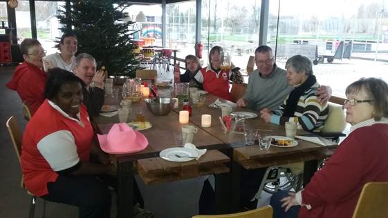 Het was gezellig, jolig. We waren aan elkaar gewaagd. Zelfs met Sinterklaasliedjes.